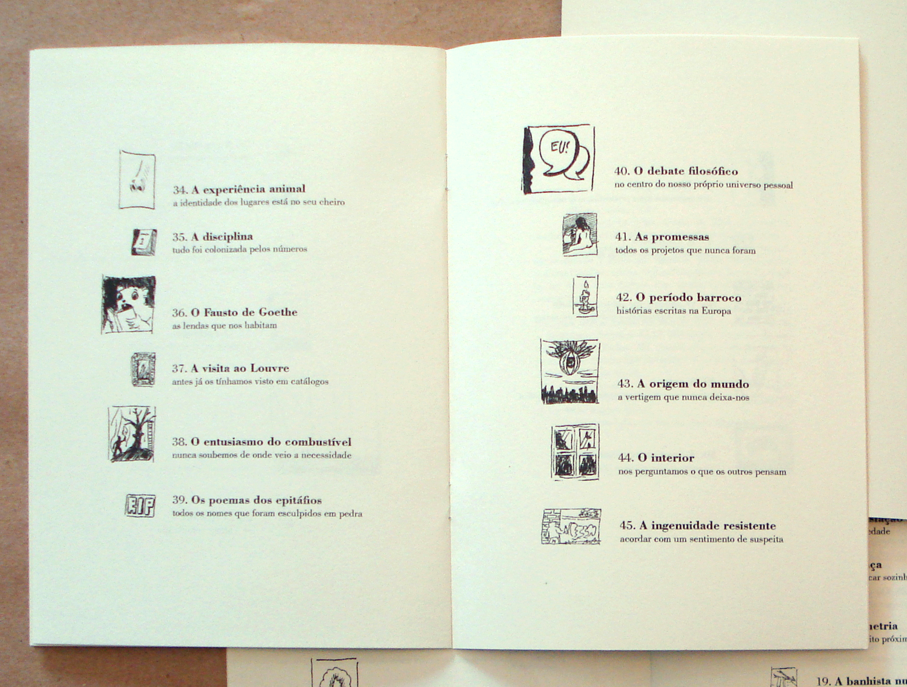 ENG | Series of 50 miniature paintings / oil on cardboard, each between 0.8x0.8cm and 3x3cm. Publication where each of the miniatures appears in order and numbered with its sketch, title and subtitle.