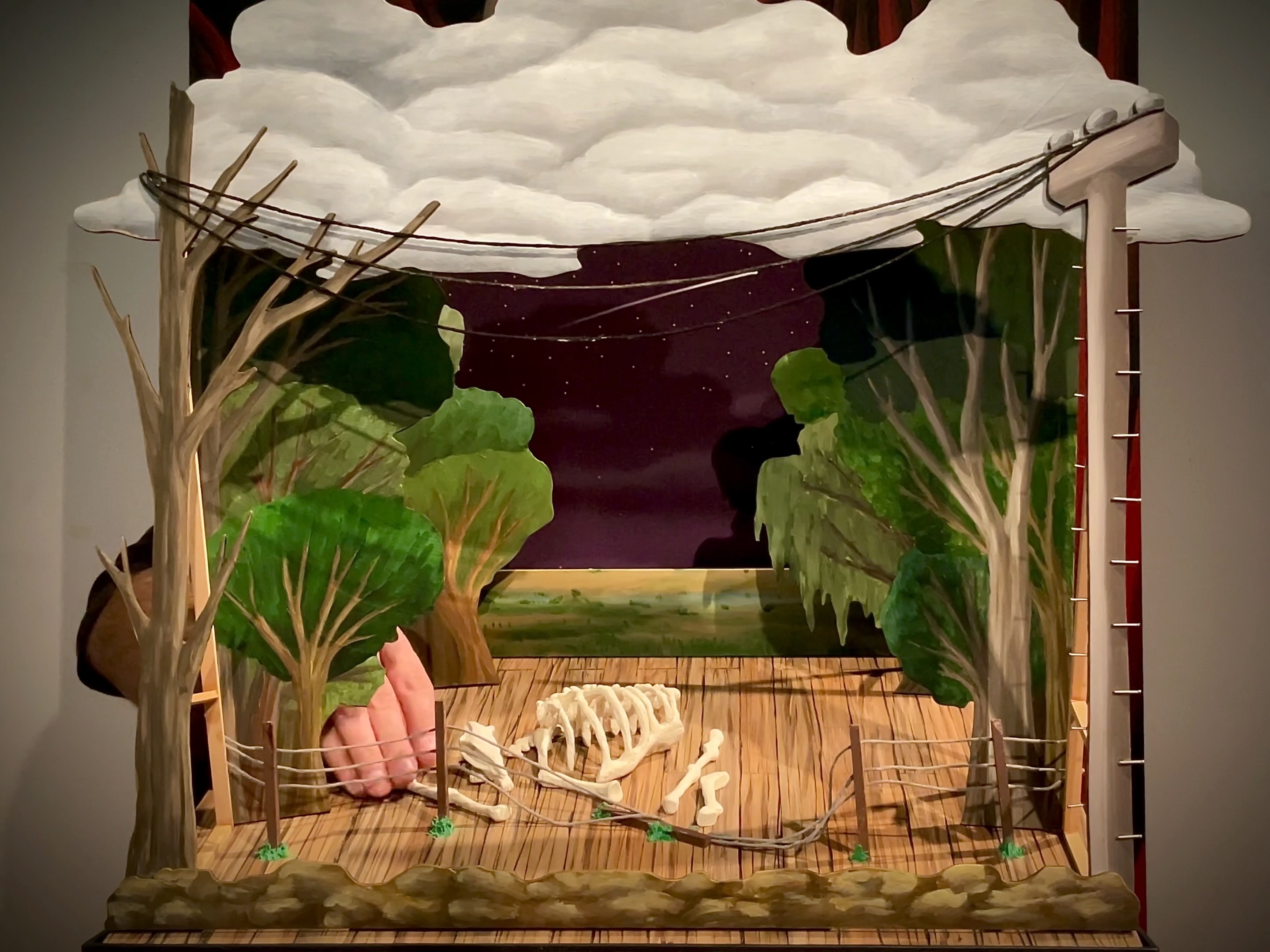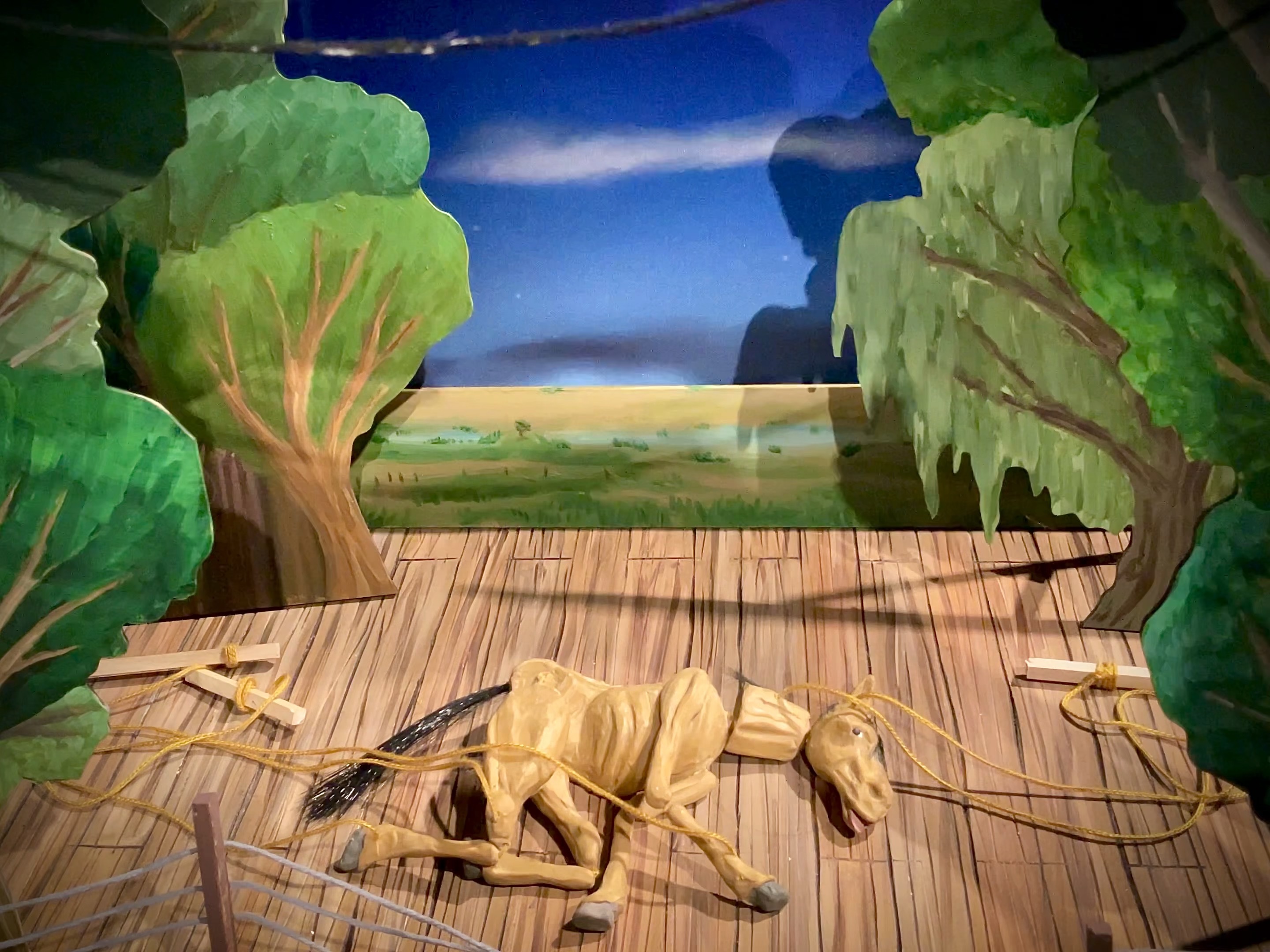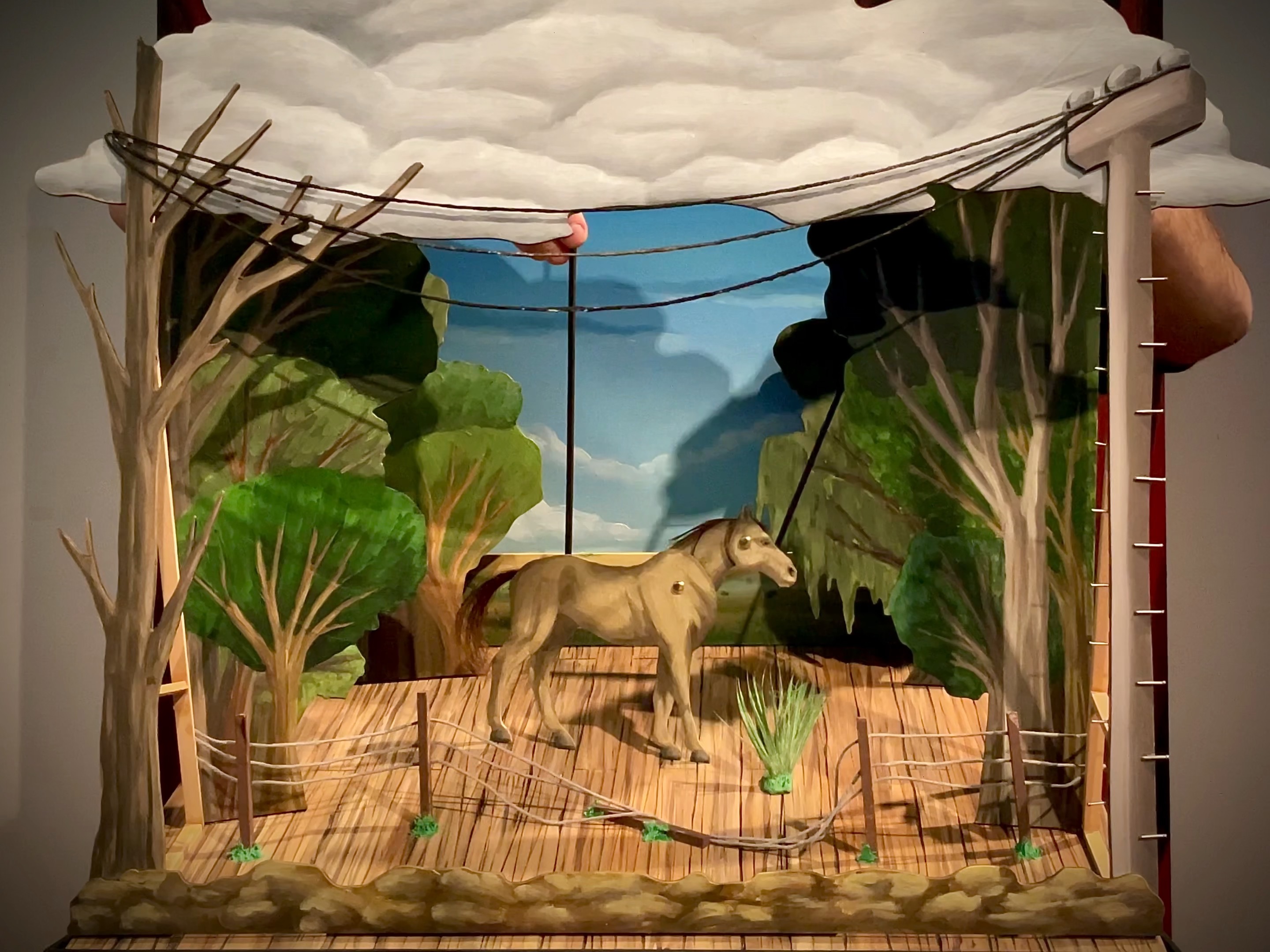 ES | Un teatrino con un paisaje pampeano es el escenario donde con diferentes títeres se narra el proceso de descomposición del cuerpo de un caballo. El trabajo toma como punto de partida el género del Kusôzu, un género de pintura japonesa donde, desde el siglo XIII, se ilustran las 9 etapas de descomposición de un cuerpo según la tradición budista.