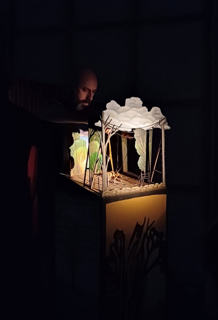 landscape is the stage where different puppets narrate the process of decomposition of a horse's body. The work takes as its starting point the genre of Kusôzu, a genre of Japanese painting where, since the 13th century, the 9 stages of decomposition of a body are illustrated according to the Buddhist tradition.