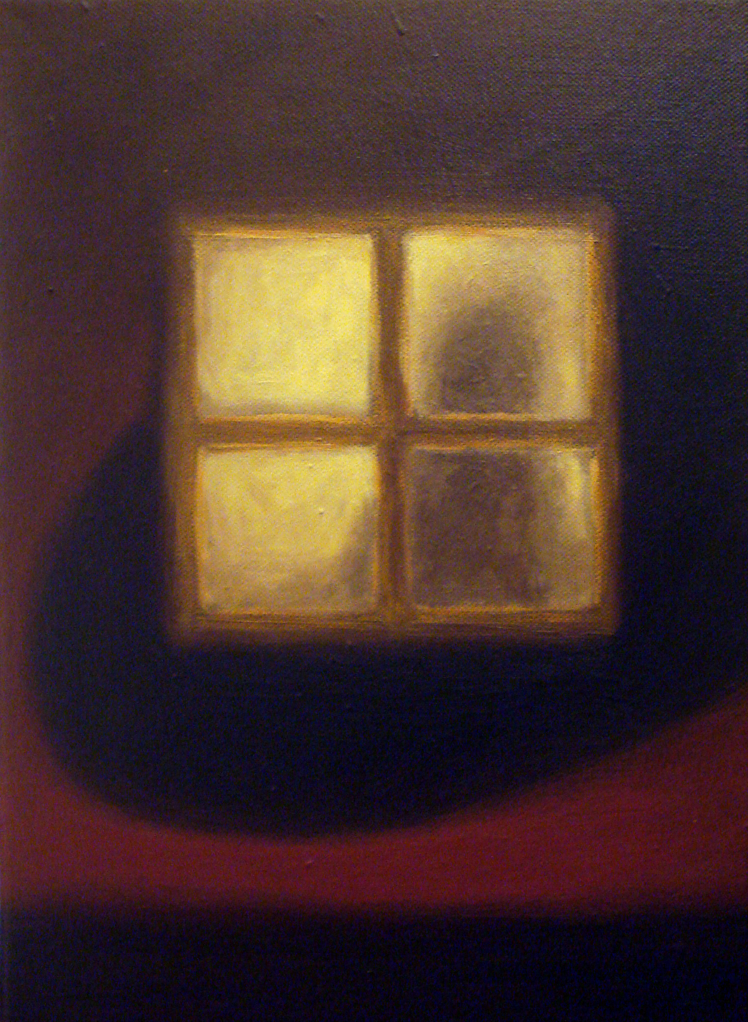 oleo sobre cartón, hilo y clavo / oil on cardboard, thread and nail